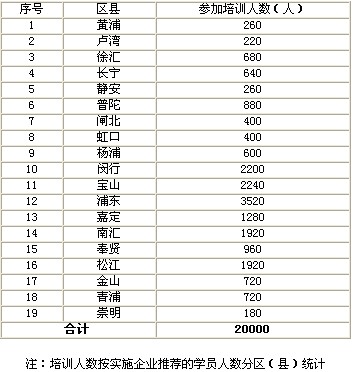 建筑業農民工技能培訓示范工程各區縣人數指標