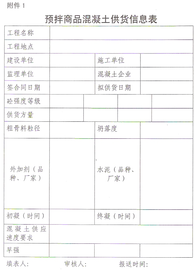 附件:1、預(yù)拌商品混凝土供貨信息表