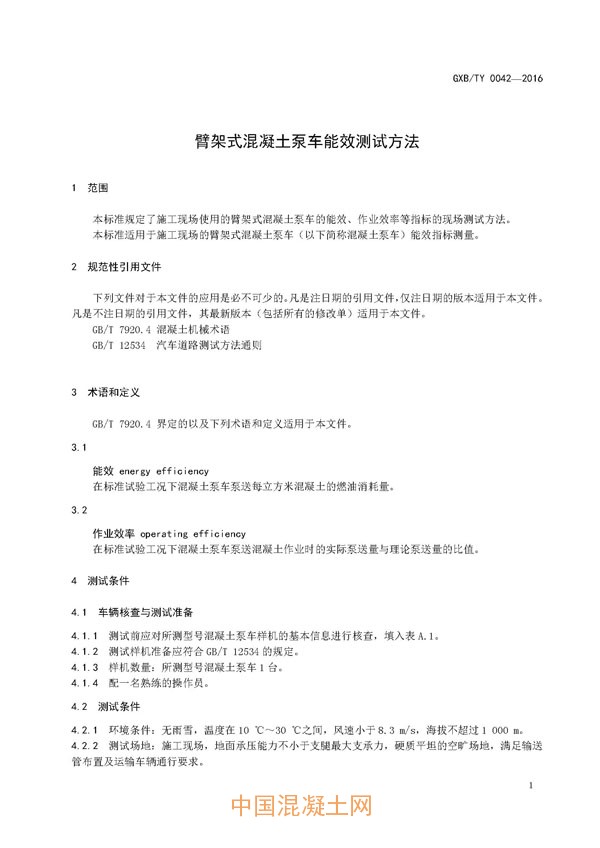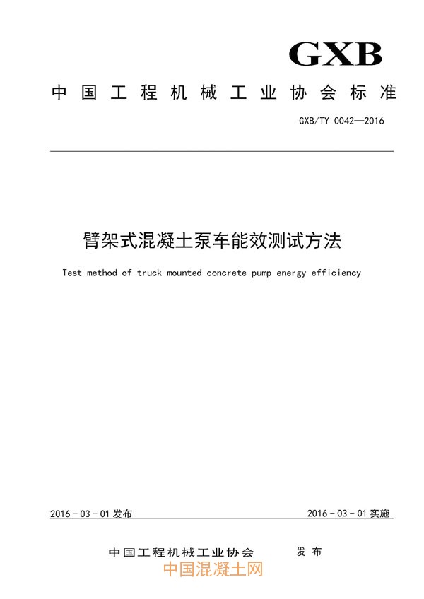 點(diǎn)擊下載全文:GXB/TY 0042—2016臂架式混凝土泵車能效測(cè)試方法