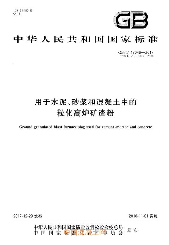 點擊下載全文:《用于水泥、砂漿和混凝土中的粒化高爐礦渣粉》(GB/T 18046-2017)
