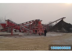 ????? 石料由振動給料機均勻地送到顎式破碎機進行粗破,粗破后的物料由膠帶輸送機送入到制砂機進行進一步破碎,細碎后的物料被輸送到振動篩進行篩分,達到成品粒度要求的物料被送入洗砂機清洗,清洗后由成品輸送帶輸出即為成品;未達到成品粒度要求的物料從振動篩返回制砂機重新加工,形成閉路多次循環。成品粒度可按用戶的需求進行組合和分級。如果選用干法生產工藝,可配備粗細粉分離機和除塵設備。