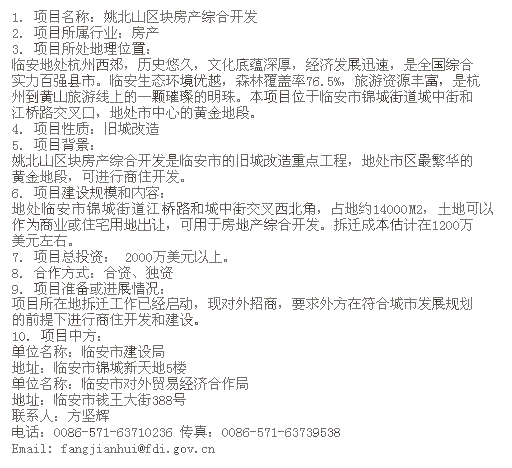 浙江姚北山區塊房產綜合開發招商引資