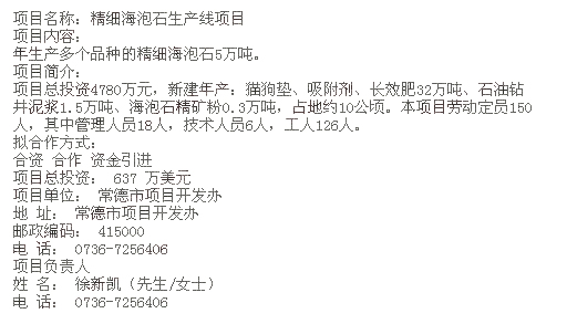 湖南精細(xì)海泡石生產(chǎn)線項(xiàng)目