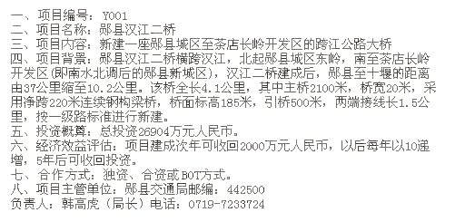 湖北十堰鄖縣漢江二橋項(xiàng)目招商