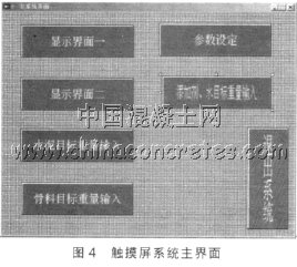 以觸摸屏和可編程控制器為控制器開發的混凝土攪拌站自動化控制系統, 具有穩定、可靠,可以按照設定的配方, 自動、連續地控制各部分物料的計量、投料、攪拌和出料, 同時該系統還有對數據進行瀏覽、查詢、統計、打印等一系列管理功能。系統通過除n 取余震蕩曲線法對落差進行自動修正, 準確地控制計量精度。通過觸摸屏和PLC 結合使用, 可以在觸摸屏中直接設定目標值與實際值進行比較。并可實時監控到系統實際值的大小, 實現報警, 判斷等功能。結合觸摸屏系統, 電子稱量儀表的配套使用, 使之功能更加強大, 現已廣泛應用于工業生產中。