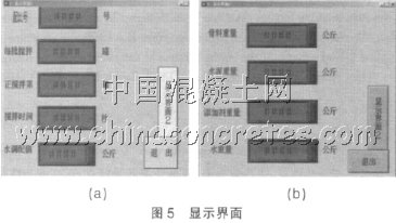 在系統中, 用戶需要觀察的量為選用的配比號、每批攪拌罐數、正在攪拌第幾罐、攪拌時間、水調整值、骨料重量、水泥重量、添加劑重量、水重量。因此, 設置相應數字顯示區, 分別顯示相應的值, 在數字內存表中占據相應的存貯空間, 同時, 通過數字內存表的地址與PLC 數字存儲區的位置對應起來。系統啟動后, 由傳感器、顯示儀表等將有關信號送入PLC 進行處理, 因PLC 數字存儲區的地址與觸摸屏內存表相關聯, 此時, 觸摸屏就可以實時顯示數據。數據的精度與位數根據實際情況在觸摸屏的數字內存表的屬性中設置, 見圖5 的( a) 、( b) 所示: