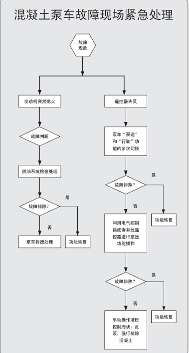 每個泵送操作工必須熟練掌握泵車發生故障時應急處理方案,并且親自動手操作,提高泵送操作工的技能。