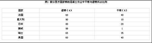 部分西方國家噴射混凝土作業(yè)中干噴與濕噴所占比例