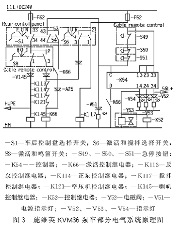 施維英泵車在使用中穩定性和可靠性極高,但電氣系統至今仍采用繼電器控制,這種系統相對比較復雜,電路圖識別比較困難,檢修較難。
