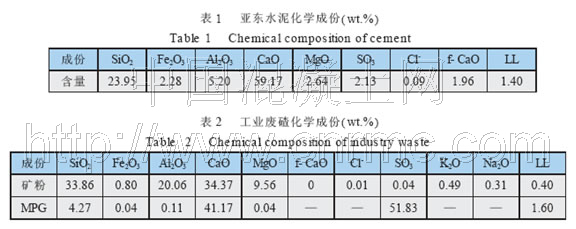 水泥由武漢亞東水泥有限公司吳家山研磨廠生產的亞東水泥, 品種等級為42.5 普通硅酸鹽水泥,化學分析見表1。