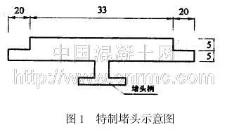 1) 封堵螺栓孔 對拉螺栓孔需要封堵,措施如下: (1) 清理螺栓孔; (2) 用特制堵頭(圖1 所示) 堵住墻外側,將顏色稍淺的補償收縮砂漿從墻內側向孔里灌漿至孔深1/ 2 ,再用φ25~φ30 平頭鋼筋扦插搗實; (3) 將止水條塞入孔中心部位,抵住砂漿,以保證防水效果; (4) 再灌上述補償收縮砂漿至內墻面平,輕輕旋轉出特制堵頭并取出; (5) 覆蓋養護。