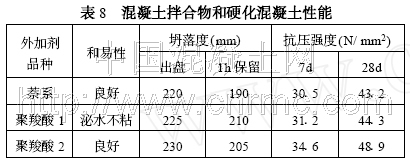在此需要特別提醒的是,我們?cè)谠囼?yàn)過(guò)程中發(fā)現(xiàn)即使只是更換外加劑品種時(shí)沒(méi)充分洗刷攪拌鍋或外加劑計(jì)量容器壁上極少的附著量也會(huì)對(duì)外加劑的減水分散性能產(chǎn)生明顯的影響,故兩種外加劑(至少本試驗(yàn)所用的兩種外加劑) 不能混用。