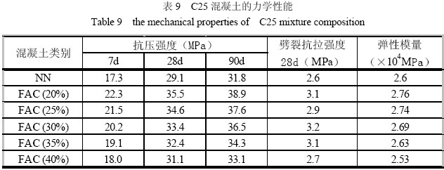1.在力學性能方面因粉煤灰混凝土早期強度較低,后期強度較高,因此,在粉煤灰混凝土中采用摻高性能減水劑的辦法來彌補混凝土早期強度較低的問題,效果較好。