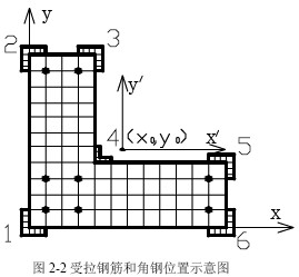 對同一根異形柱中不同位置的角鋼進行應力分析和比較,可以更清楚了解各個角鋼在加固異形柱中所發揮的作用。從而可以更有效的利用角鋼,并節省資源。 圖2-2 角鋼的位置分布示意圖。