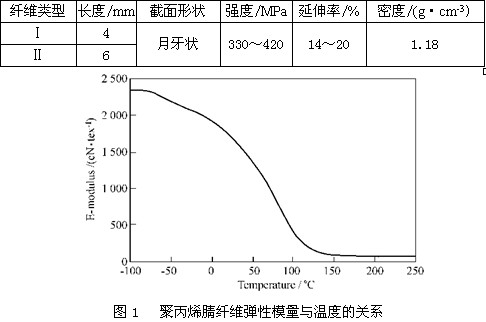 P.O 42.5R水泥、高爐礦渣微粉;中河砂,碎石;FDN高效減水劑和JQ高性能引氣劑;海川路威○R2000型聚丙烯腈纖維。該纖維彈性模量隨溫度降低而提高,見圖1所示。
