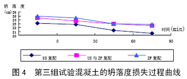 1.3 相同摻量大流動(dòng)性混凝土保塑性能比較