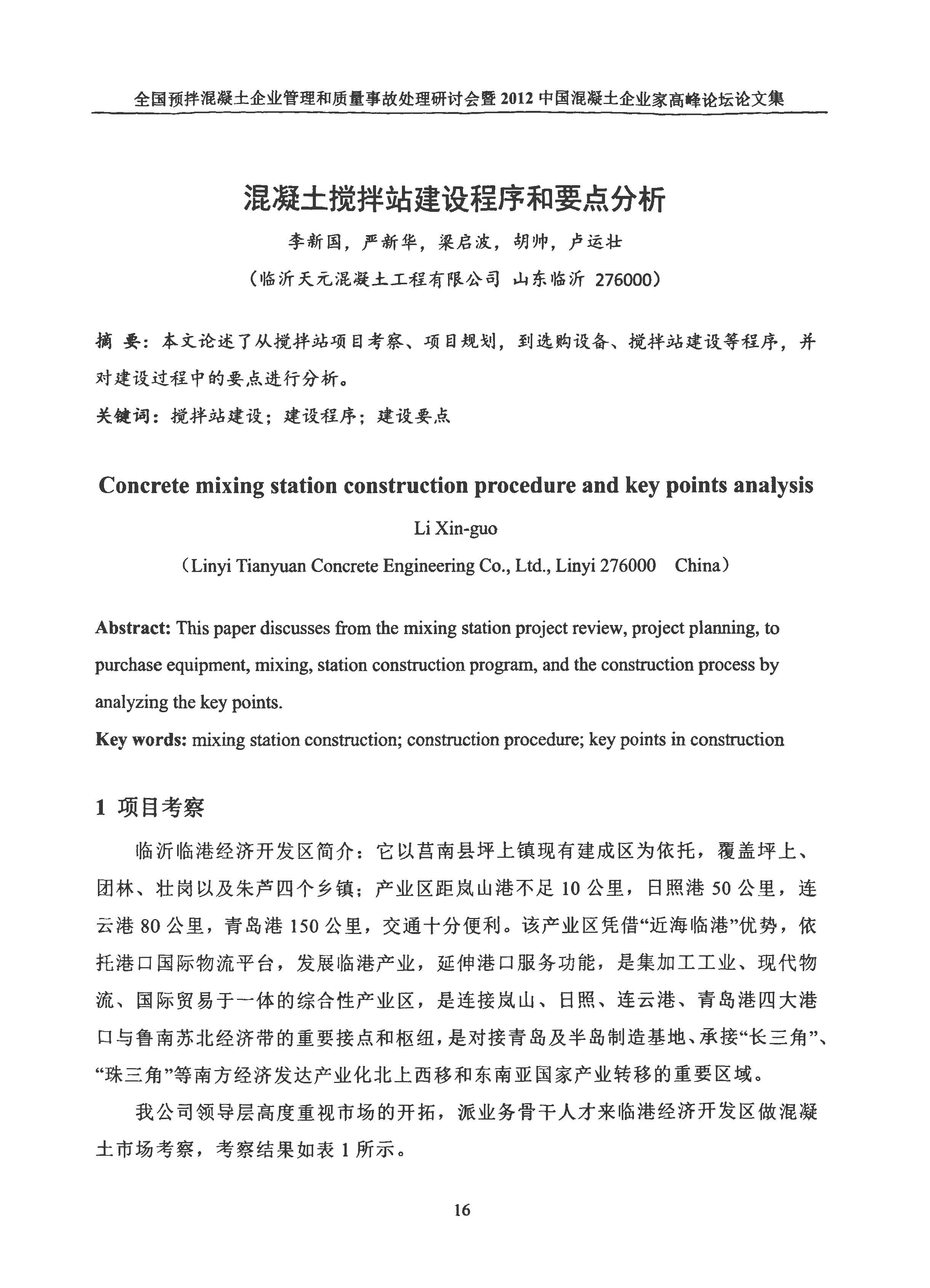 核心提示:本文論述了從攪拌站項目考察、項目規(guī)劃,到選購設備、攪拌站建設等程序,并對建設過程中的要點進行分析。為保證混凝土攪拌站的經(jīng)濟效益,在攪拌站建設前要進行混凝土需求市場的考察,根據(jù)考察結果選擇攪拌機型號和攪拌站建設規(guī)模。然后進行攪拌站規(guī)劃布置,建設院墻、澆筑攪拌站基礎、建設辦公室等建筑、地面硬化等,根據(jù)規(guī)劃要求選購設備。在建設的攪拌站要注重環(huán)保,建設資源節(jié)約型攪拌站。明確的混凝土攪拌站建設的程序和建設要點是攪拌站建設的保障,是創(chuàng)造效益的前提。