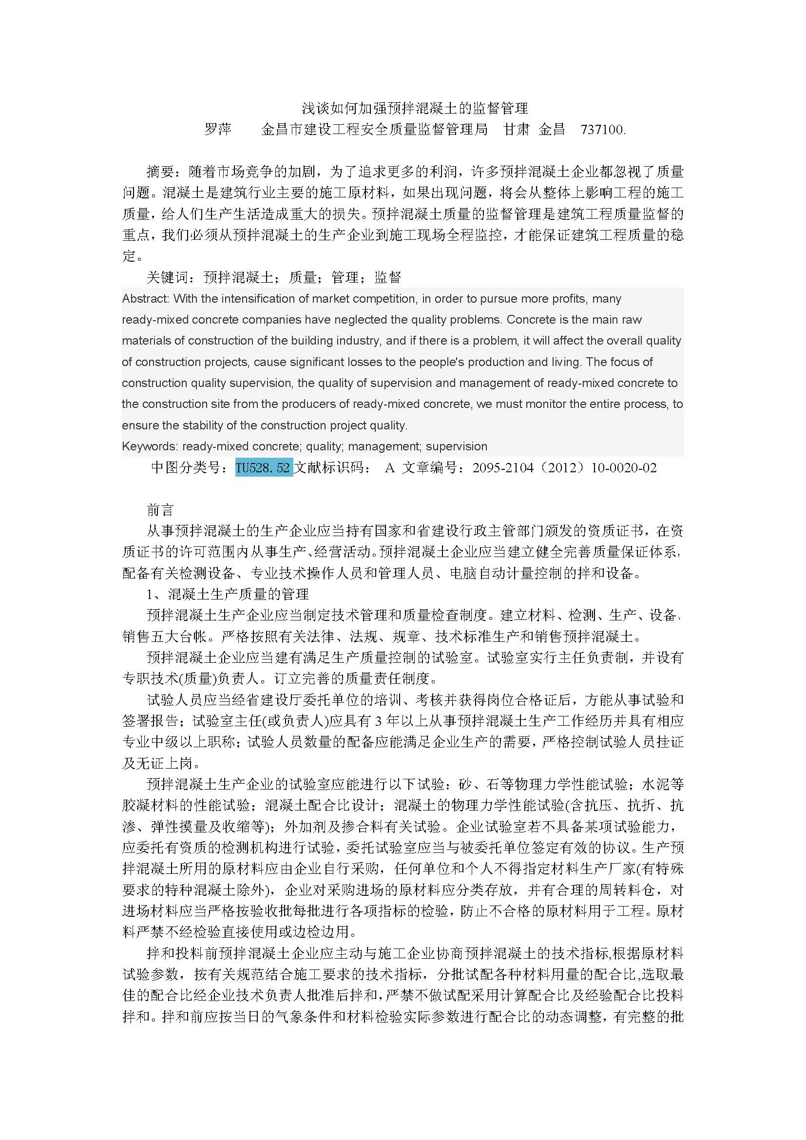 點擊下載全文:淺談如何加強預拌混凝土的監督管理