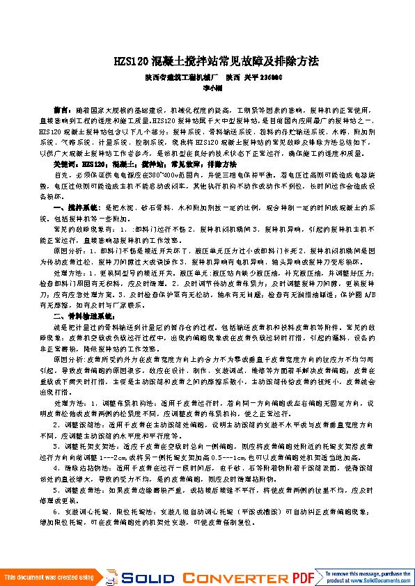 HZS120型混凝土攪拌站的常見故障及排除方法
