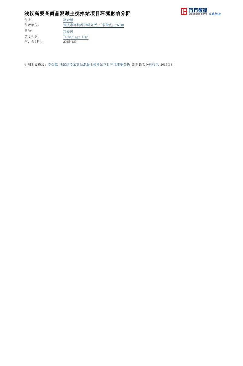 點擊下載全文:淺議高要某商品混凝土攪拌站項目環境影響分析