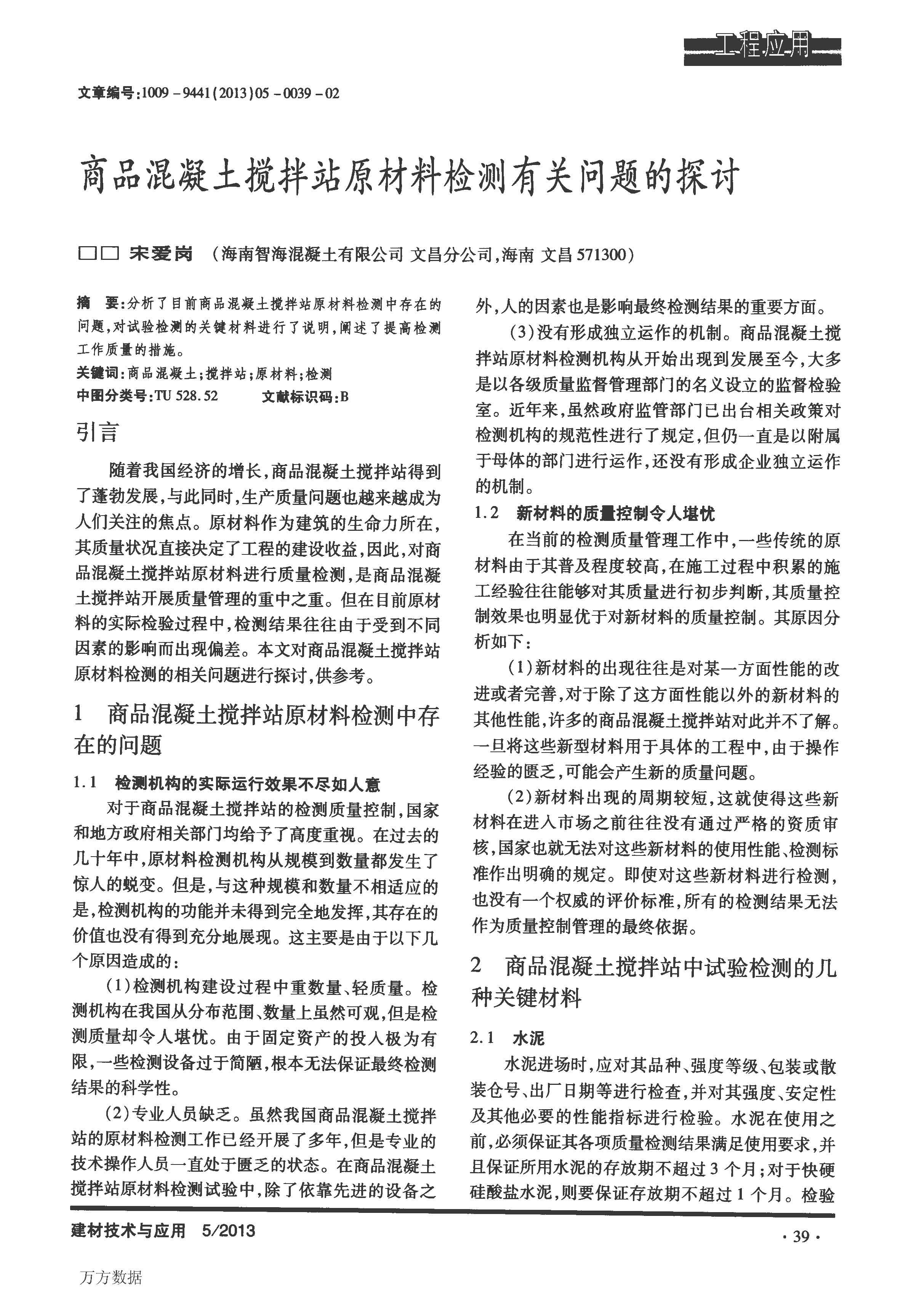 點擊下載全文:商品混凝土攪拌站原材料檢測有關問題的探討