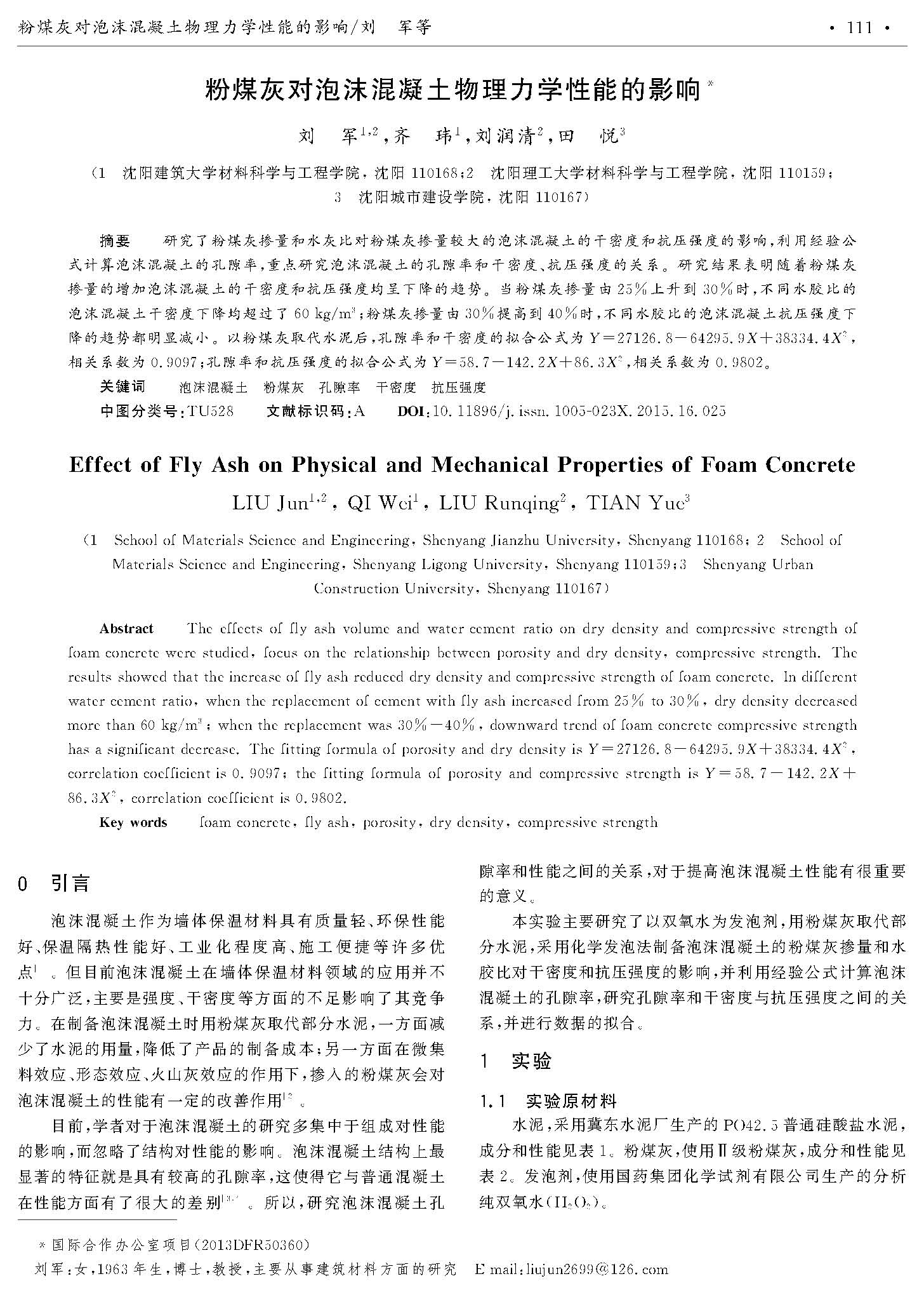 點擊下載全文:粉煤灰對泡沫混凝土物理力學(xué)性能的影響
