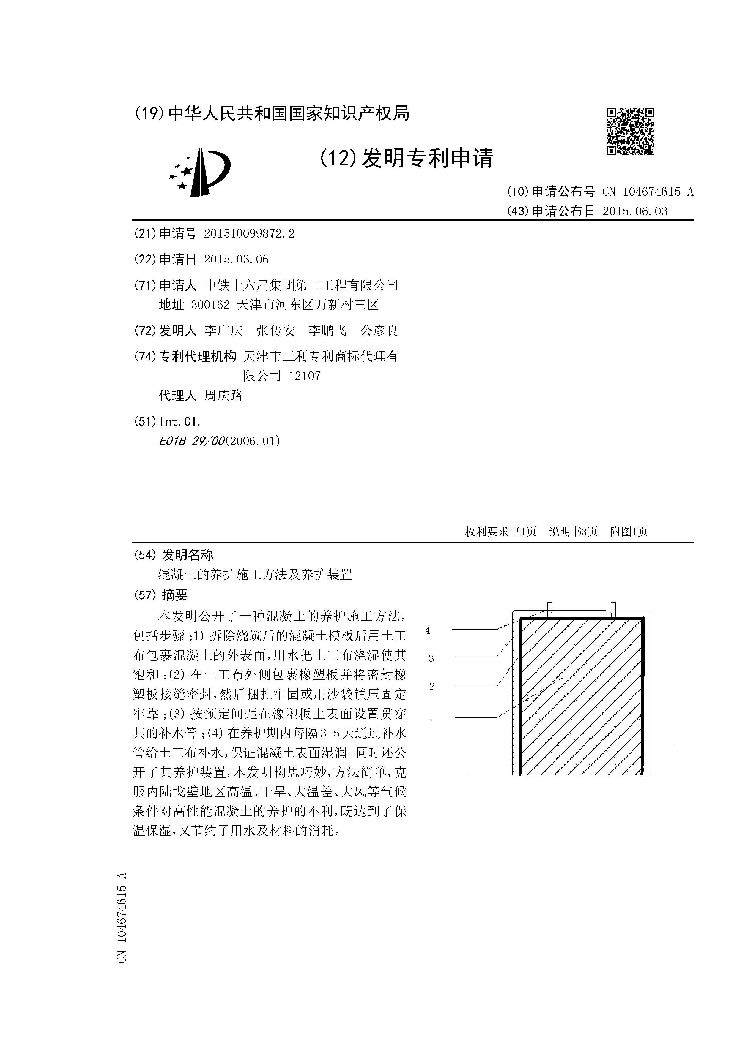 點(diǎn)擊下載全文:混凝土的養(yǎng)護(hù)施工方法及養(yǎng)護(hù)裝置(公開(kāi)號(hào):CN104674615A)