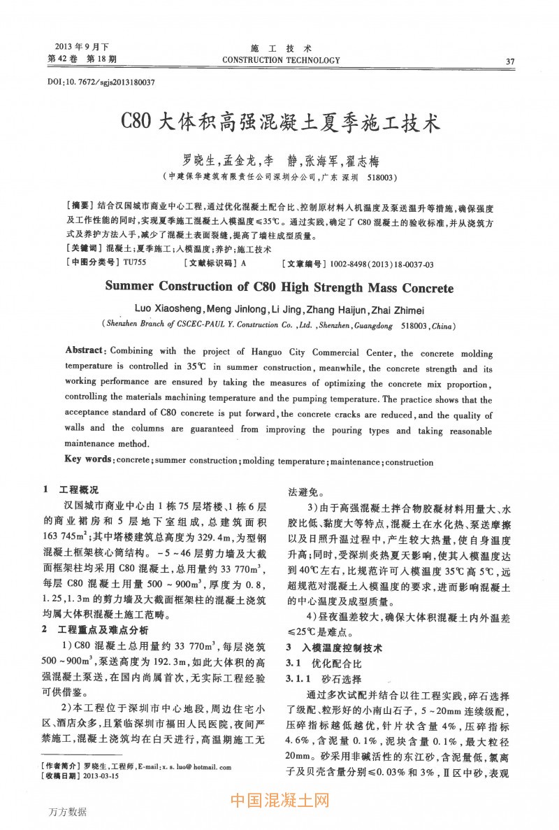 點(diǎn)擊下載全文:C80大體積高強(qiáng)混凝土夏季施工技術(shù)