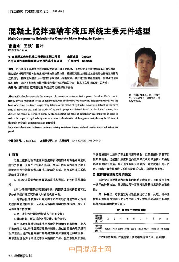 點擊下載全文:混凝土攪拌運輸車液壓系統(tǒng)主要元件選型