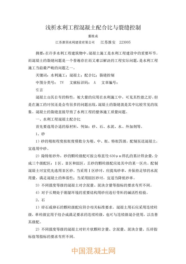 點擊下載全文:淺析水利工程混凝土配合比與裂縫控制