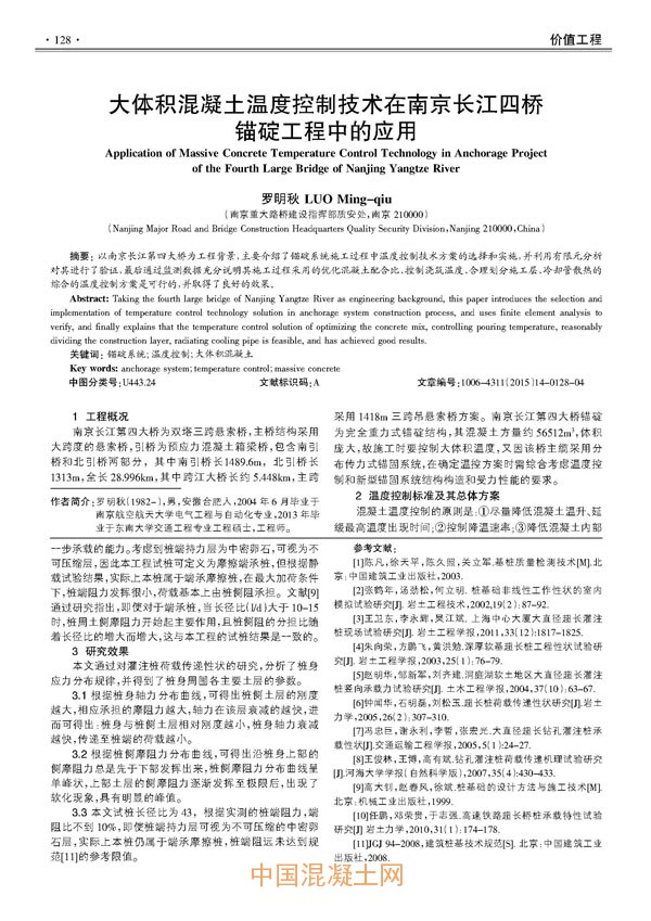 點(diǎn)擊下載全文:大體積混凝土溫度控制技術(shù)在南京長(zhǎng)江四橋錨碇工程中的應(yīng)用