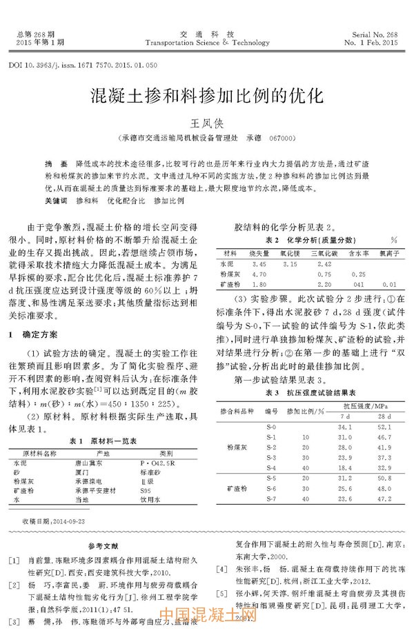 點擊下載全文:混凝土摻和料摻加比例的優化