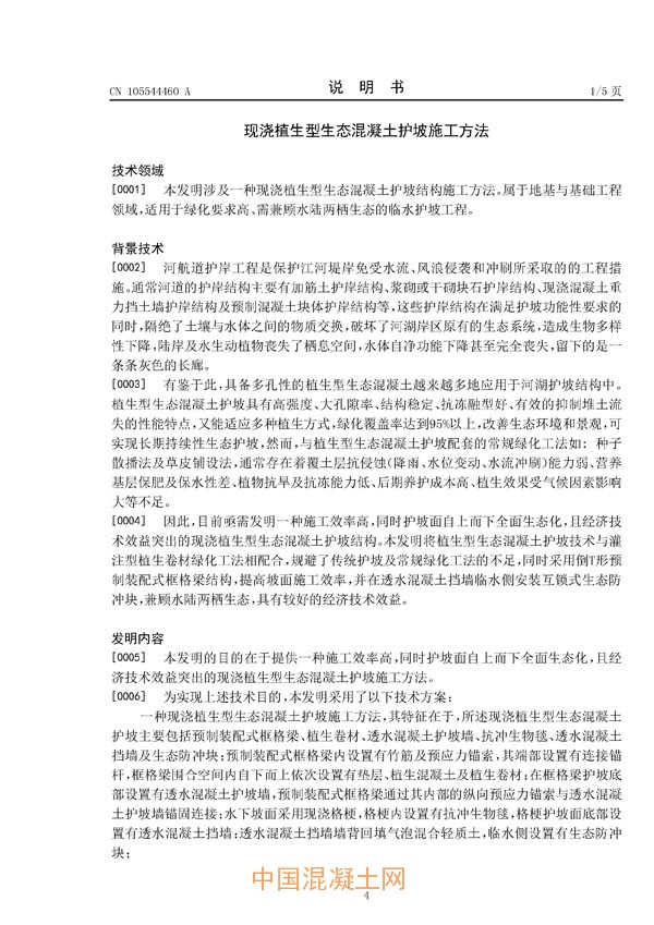 點擊下載全文:現澆植生型生態混凝土護坡施工方法(公開號:CN105544460A)