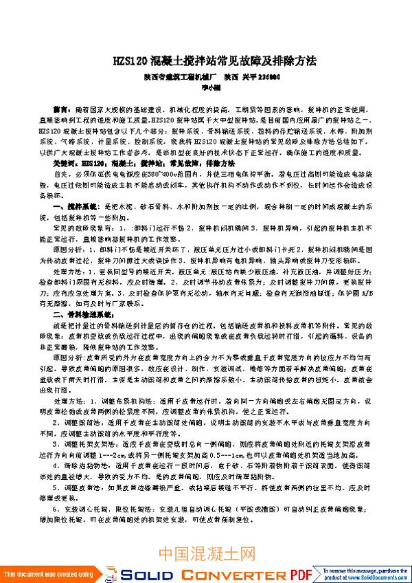 點擊下載全文:HZS120混凝土攪拌站常見故障及排除方法