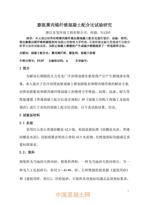 點擊下載全文:膨脹聚丙烯纖維混凝土配合比試驗研究