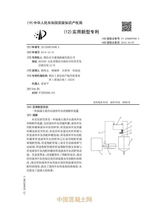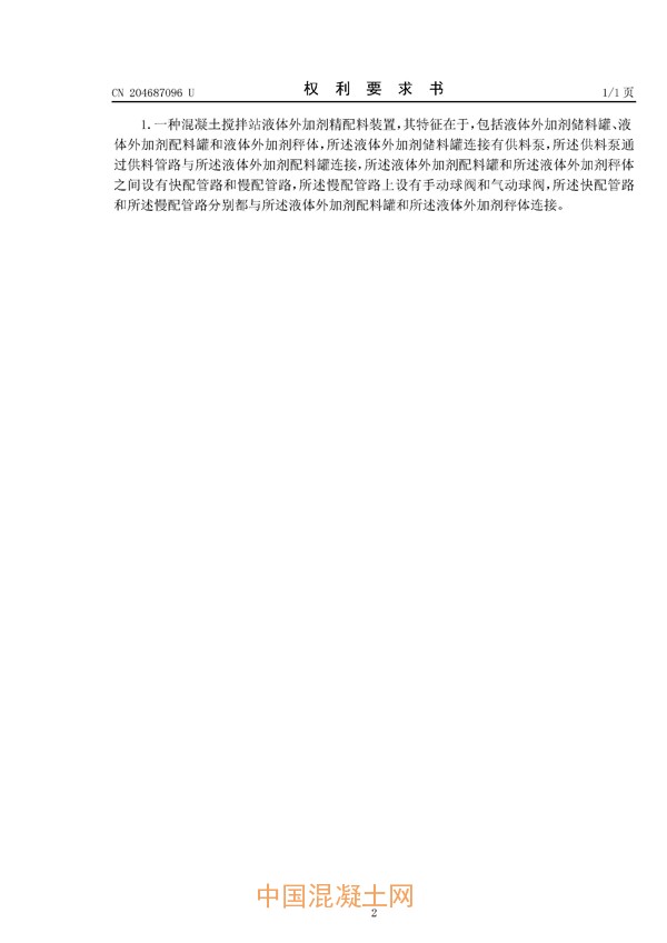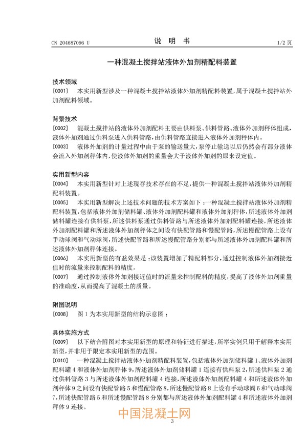 點擊下載全文:一種混凝土攪拌站液體外加劑精配料裝置(公開號:CN204687096U)