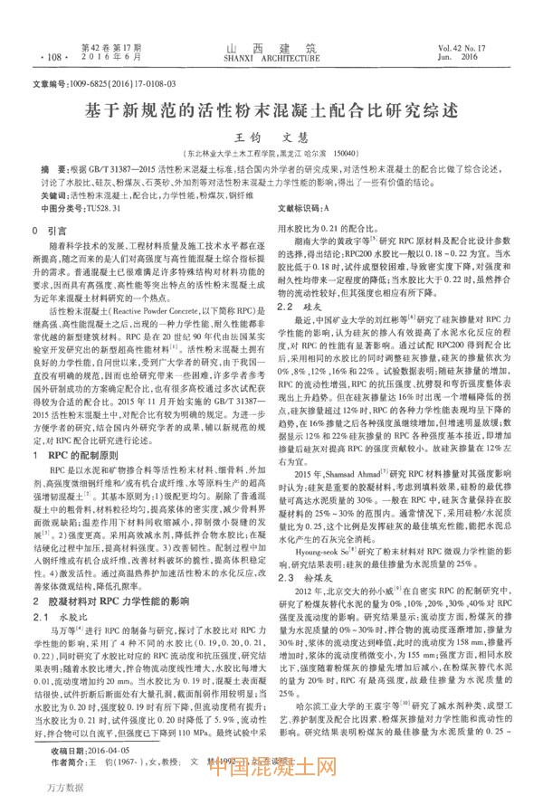 點擊下載全文:基于新規范的活性粉末混凝土配合比研究綜述