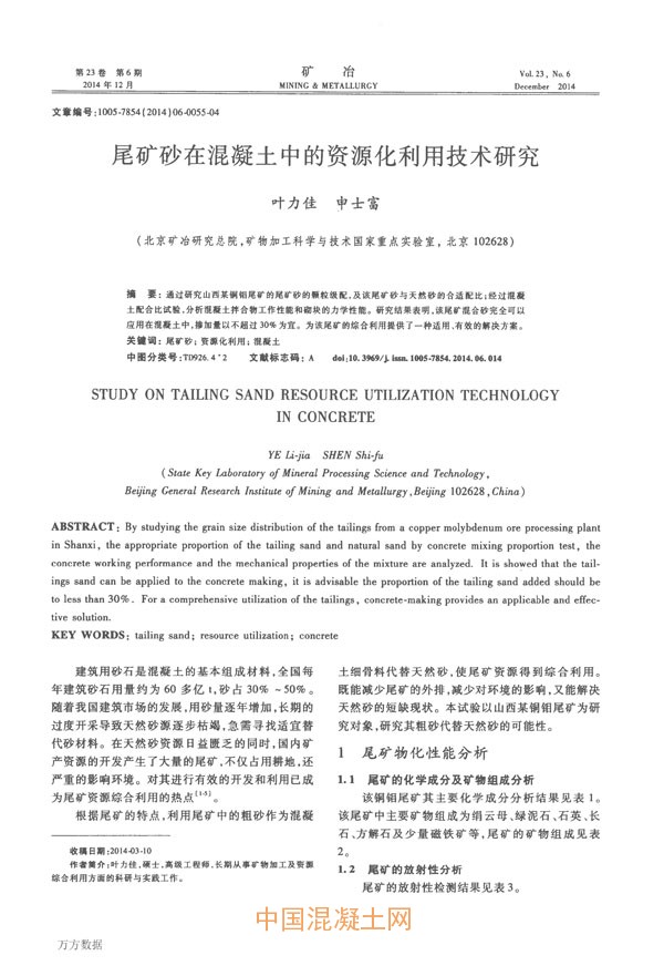點擊下載全文:尾礦砂在混凝土中的資源化利用技術研究
