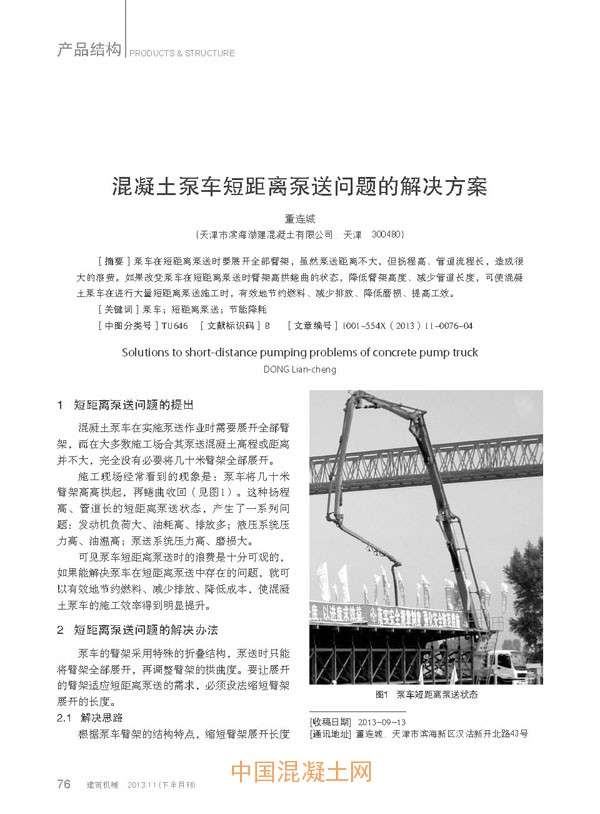 點擊下載全文:混凝土泵車短距離泵送問題的解決方案