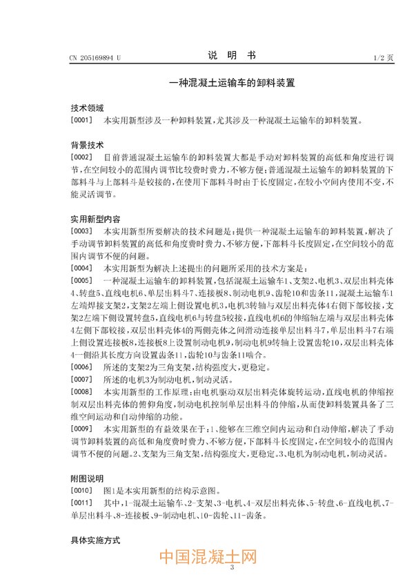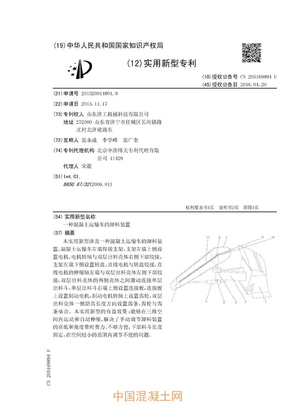點(diǎn)擊下載全文:一種混凝土運(yùn)輸車的卸料裝置(公開號(hào):CN205169894U)