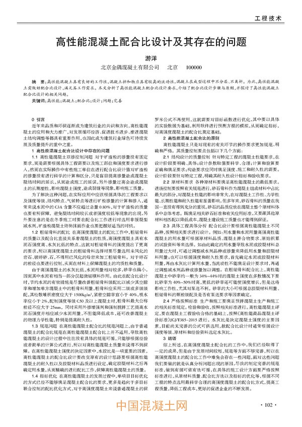點擊下載全文:高性能混凝土配合比設計及其存在的問題