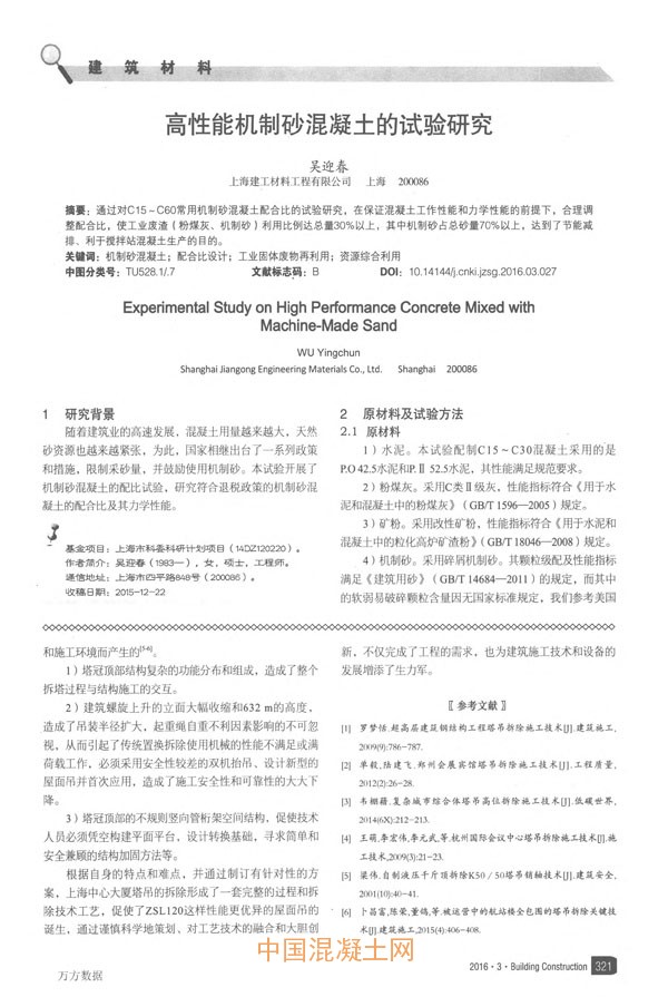 點擊下載全文:高性能機制砂混凝土的試驗研究