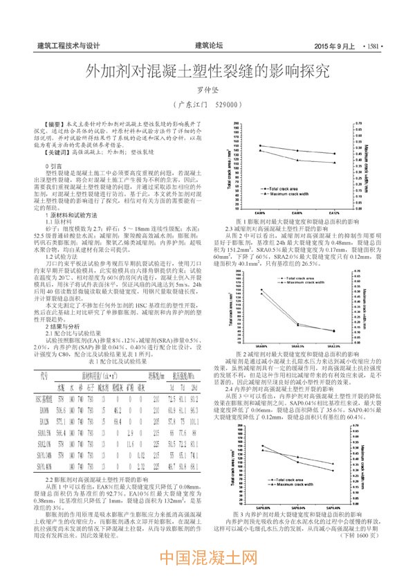 點擊下載全文:外加劑對混凝土塑性裂縫的影響探究