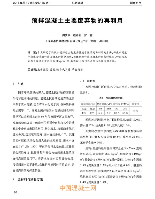 點擊下載全文:預拌混凝土主要廢棄物的再利用