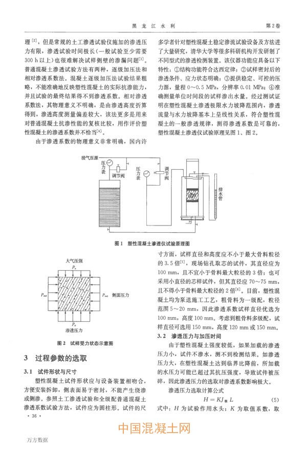 核心提示:塑性混凝土作為新型高性能混凝土材料由于發展時間晚,其滲透性能檢測和評價尚待完善.本文針對塑性混凝土的性能特點,在實踐經驗的基礎上,就滲透原理、試驗設備裝置設計、過程參數選擇以及結果處理進行分析論證,提出了先確定極限滲透坡降,后檢測滲透系數,合理取值,以真實反應其滲透性能.該法可對工程實體取芯、塑性混凝土配合比設計進行檢測和確認.