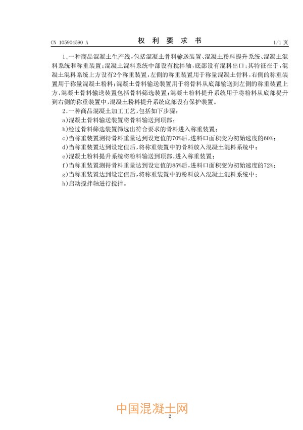點擊下載全文:商品混凝土生產線及加工工藝(公開號:CN105904590A)