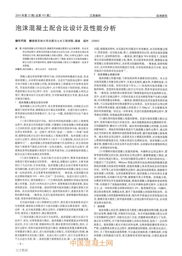 核心提示:對泡沫混凝土的有效應用,能夠更好地滿足建筑行業發展需要.但在實際應用過程中,需要對其性能及其配合比進行分析,并對其相關理論和原則進行分析,滿足泡沫混凝土的配比需要.同時,在研究過程中,對泡沫混凝土配合比需要注重的關鍵點進行了闡述,希望本文對泡沫混凝土配合比設計及性能的研究,能夠為泡沫混凝土配合比問題提供一些參考和借鑒.