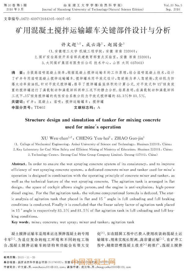 點擊下載全文:礦用混凝土攪拌運輸罐車關(guān)鍵部件設(shè)計與分析