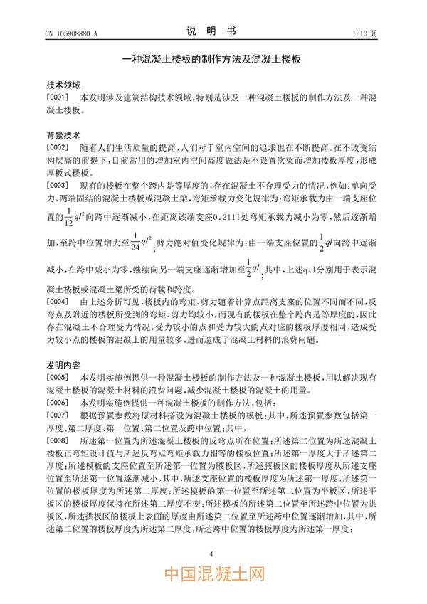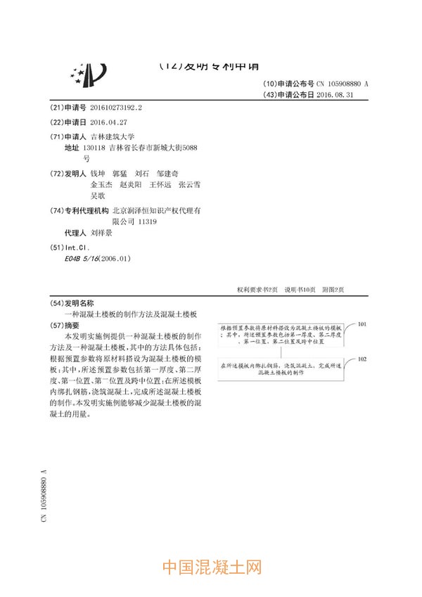 點擊下載全文:一種混凝土樓板的制作方法及混凝土樓板(公開號:CN105908880A)
