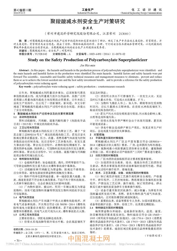 點(diǎn)擊下載全文:聚羧酸減水劑安全生產(chǎn)對(duì)策研究